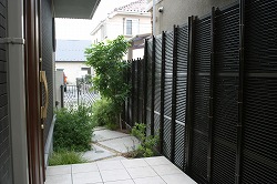 竹垣本体を形作る、あや竹に使用している樹脂素材は、軽量で耐変色性・耐候性に優れた環境対応素材です。また、有害物質ダイオキシンを発生しないエコロジー素材で安心してお使いいただけます。